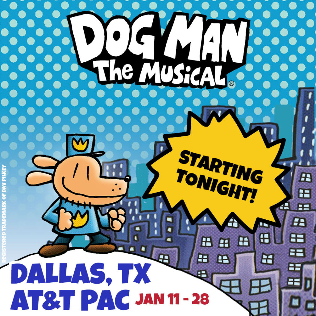 Join us for a special family friendly tour of Dog Man: The Musical that debuts in Dallas at the AT&T Performing Arts Center’s Wyly Theatre on January 11 and runs until the 28th!
