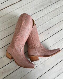 We are Texans and will almost swear that a great boot can be worn for any occasion. Look for one with a solid heel, non-slip sole and flexible shank. A pair similar to these from Tecovas are our current favorites.