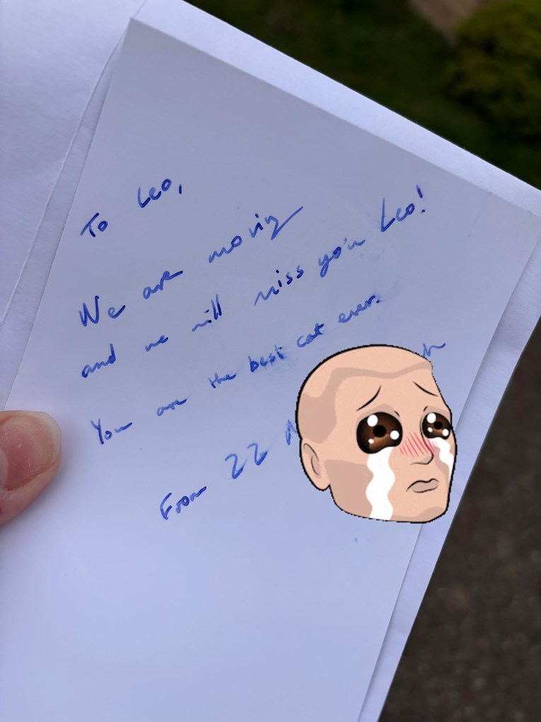 The moving message came from the man at house number 22 who was moving away. He addressed it directly to Leo and attached it to a photo of the cat grooming himself in a basket. In the note he called Leo the best cat ever and said he would miss him terribly. Amber shared the story in a TikTok video where she joked that the neighbor had ruined her day at eight in the morning with all the emotion. She explained it was the good kind of overwhelm because it showed how Leo had brightened so many lives over the past three or four years.